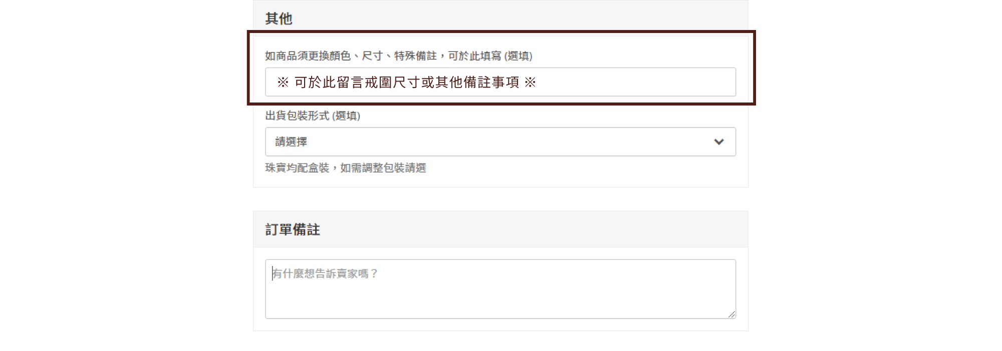 戒圍尺碼、指定製作鏈長、顏色細節等等