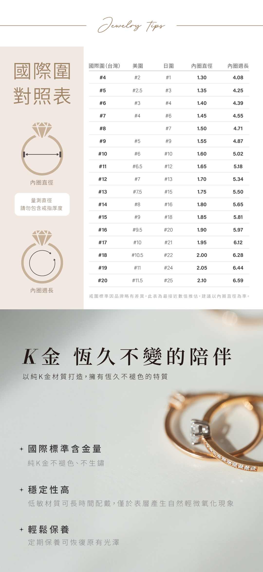 戒指可免費修改戒圍增減兩號以內,半號為單位