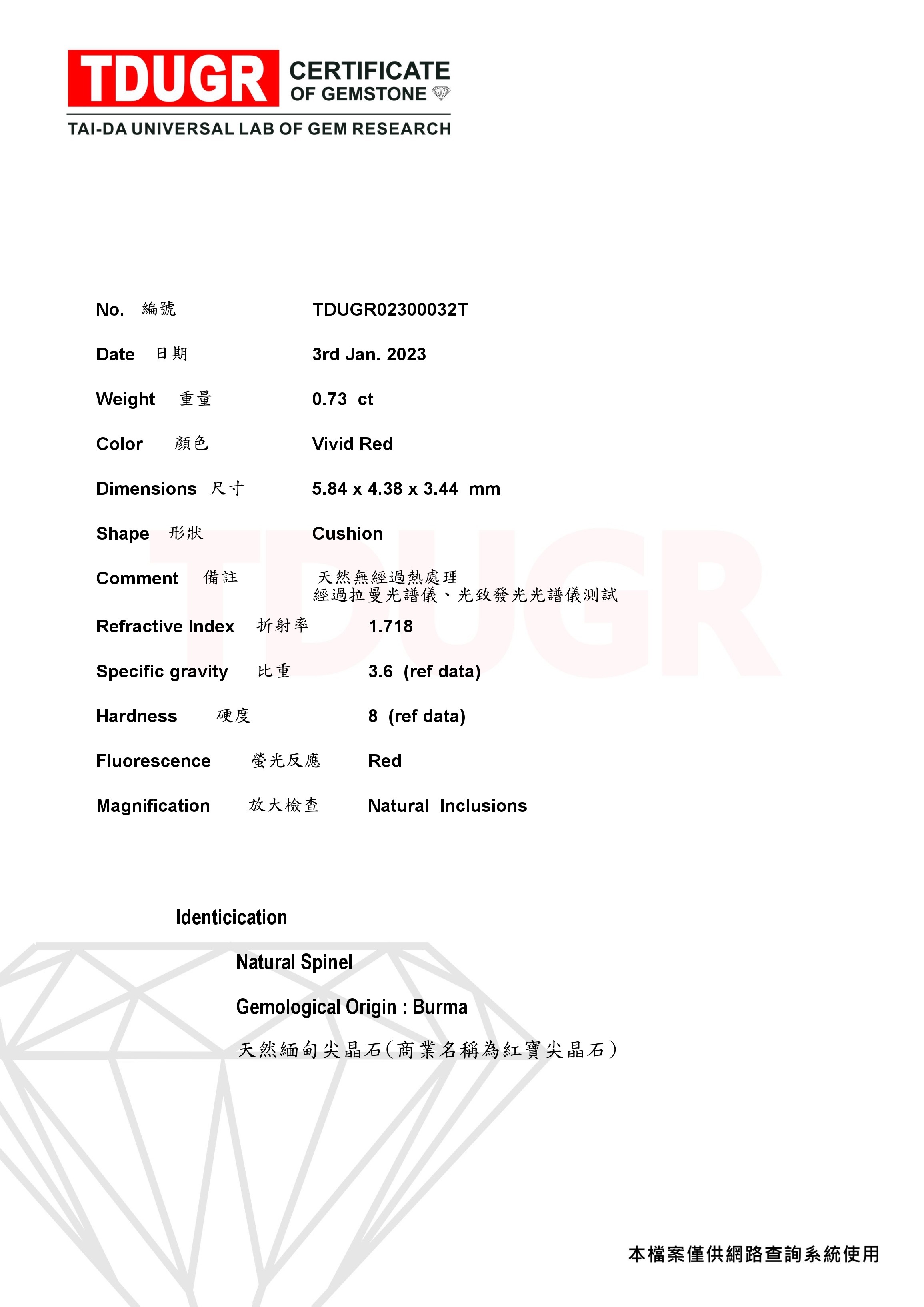 規格:紅尖晶0.73ct,鑽石0.21ct