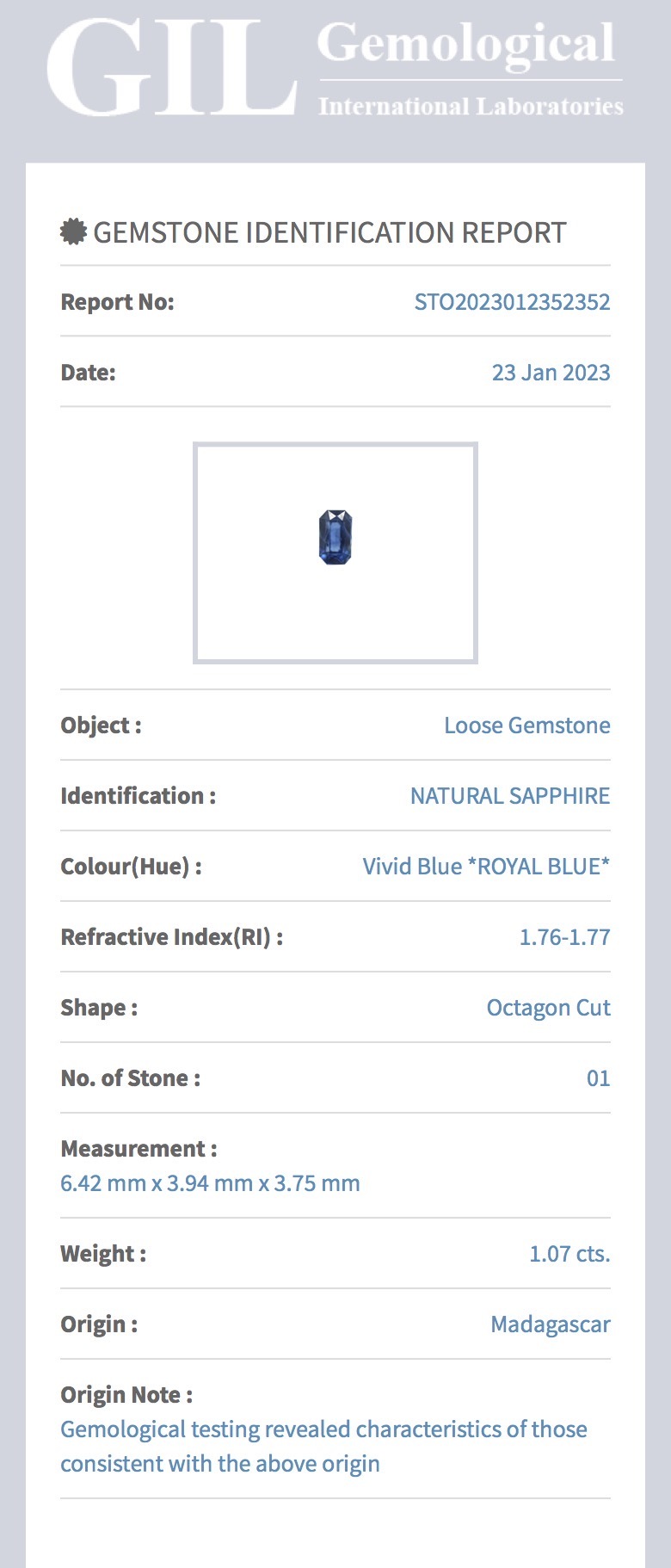 18K八角切割皇家藍寶石鑲鑽戒指|GIL證書 DR235