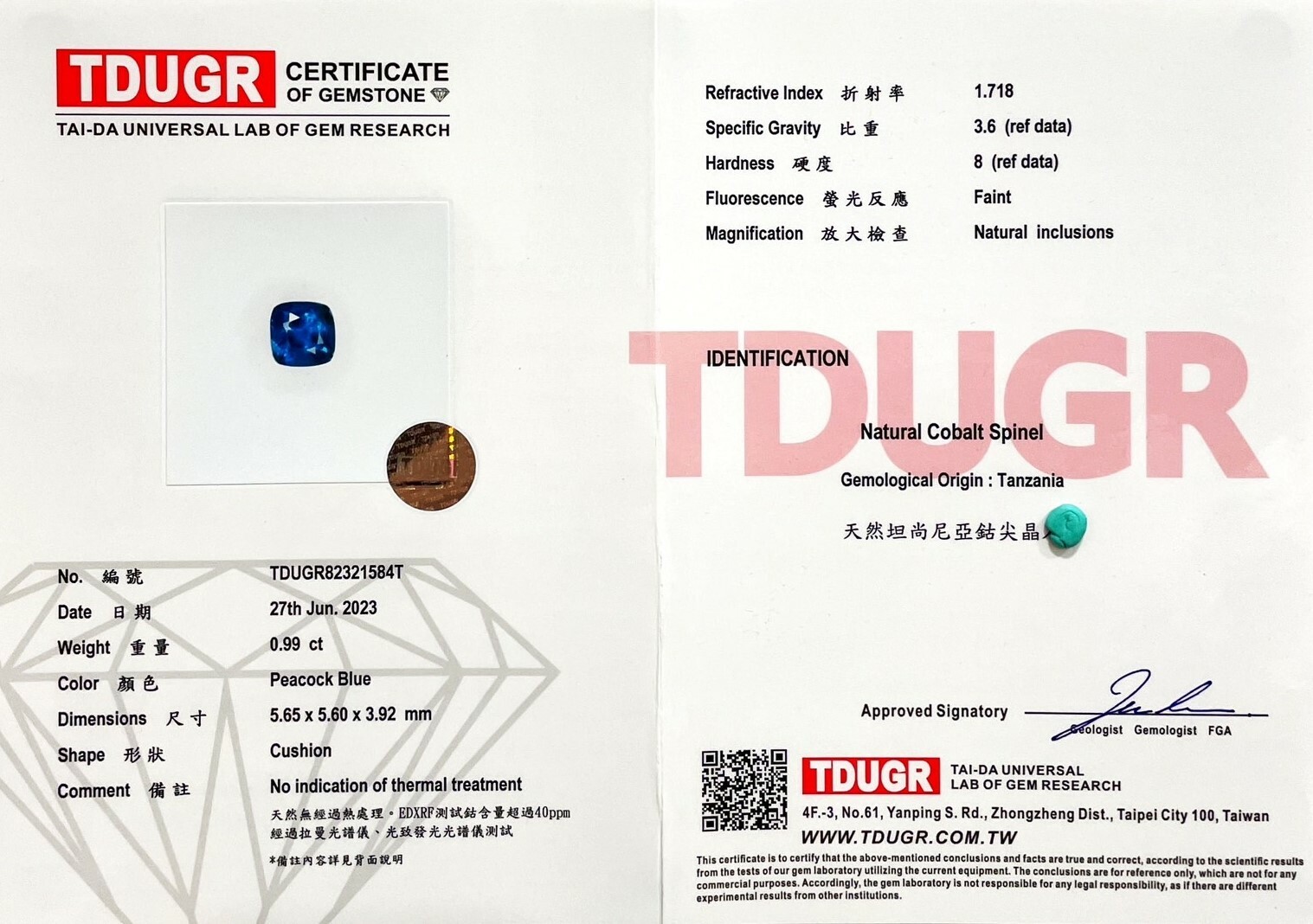 14K鈷尖晶石古董花戒指 TDUGR證書 DR252