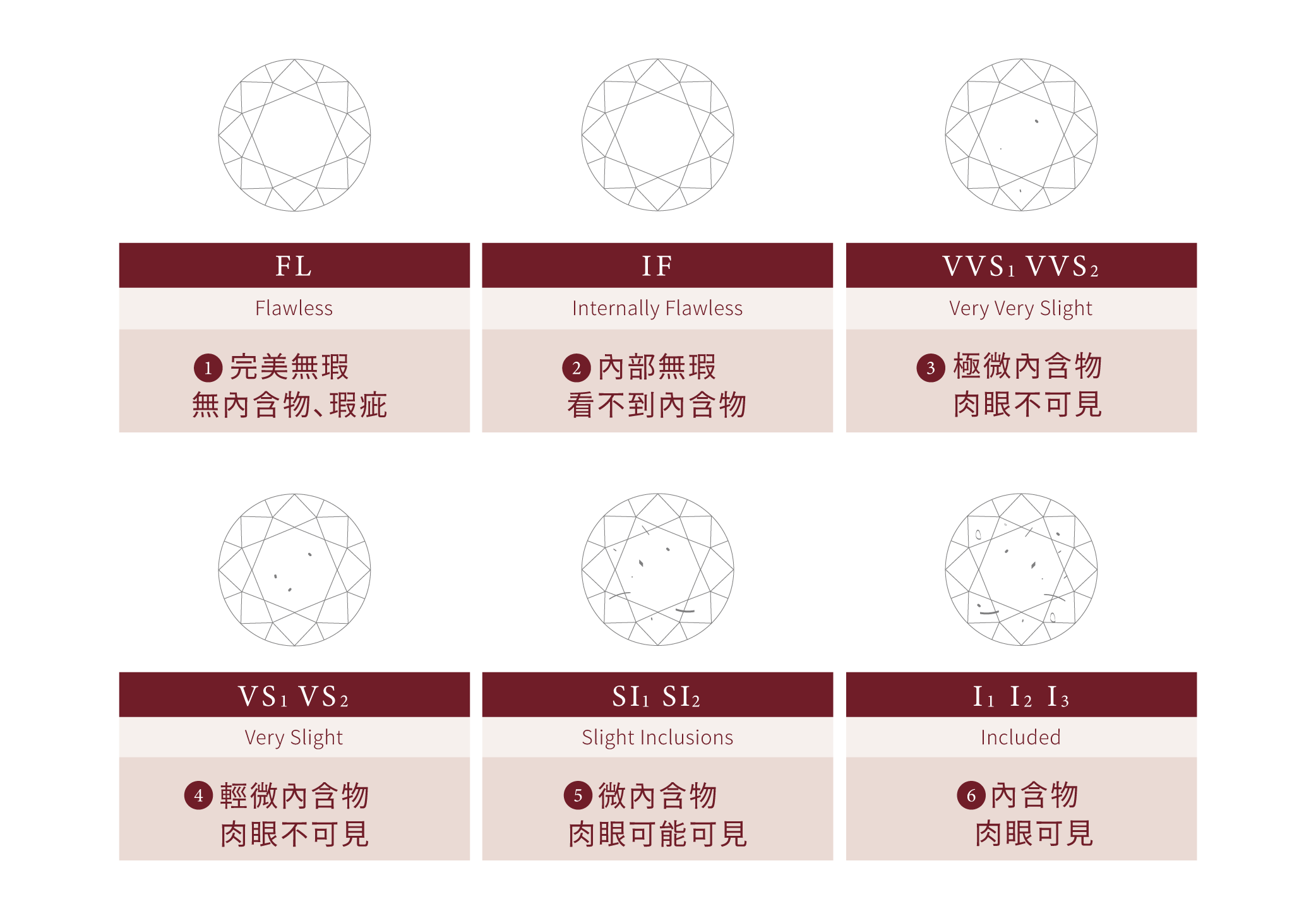 淨度 CLARITY鑽石內部和表面的乾淨度